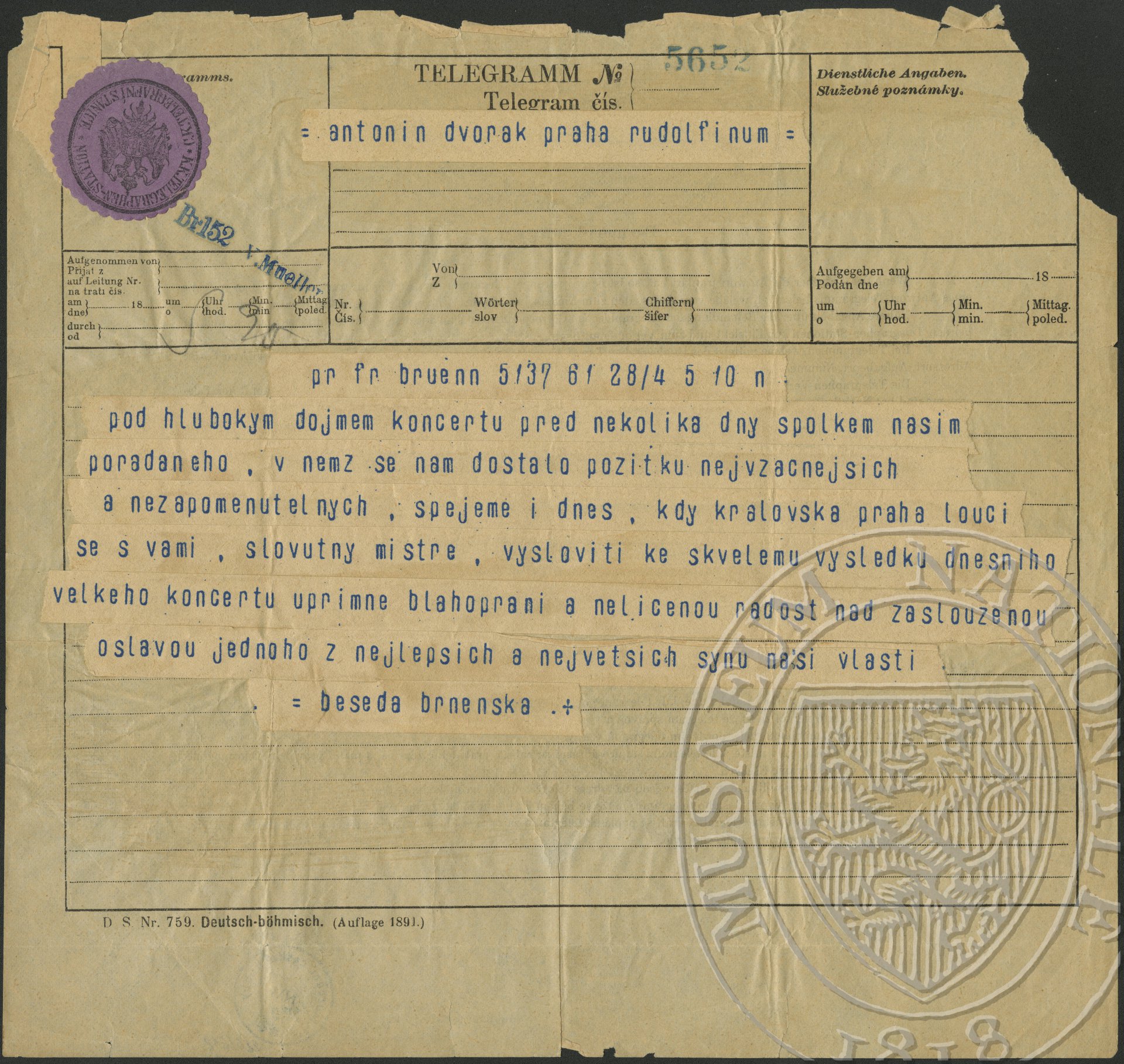 Beseda brněnská Dvořák Antonín
