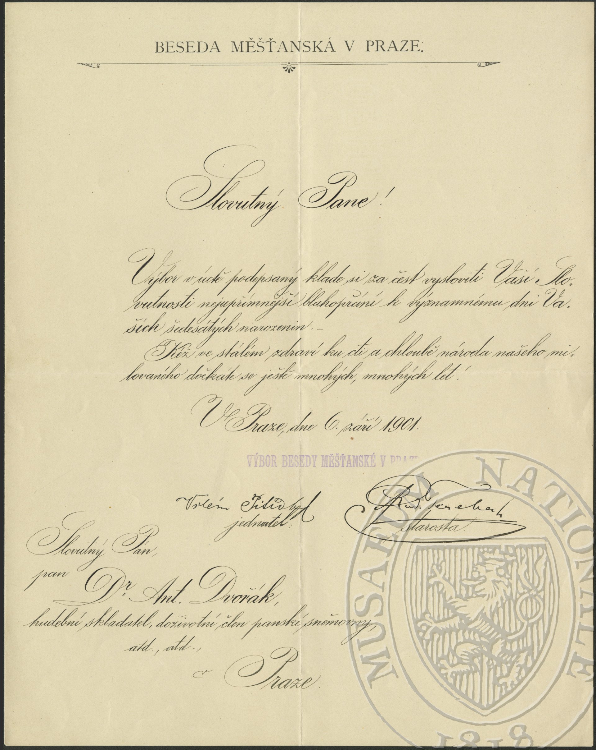 Beseda měšťanská Dvořák Antonín