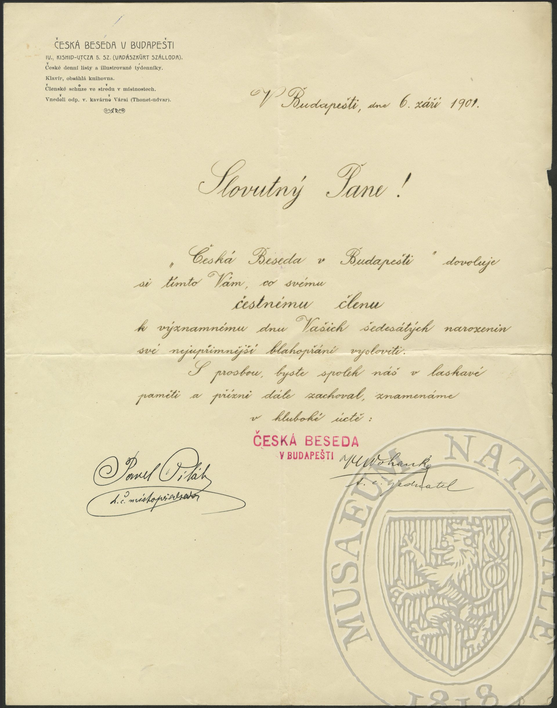 Česká beseda, Budapešť Dvořák Antonín