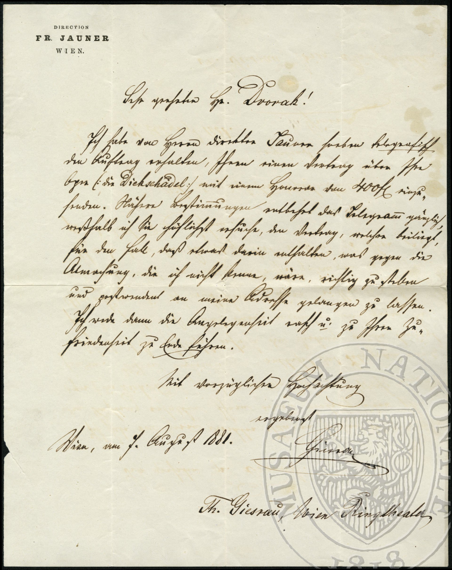 Jauner Franz Dvořák Antonín