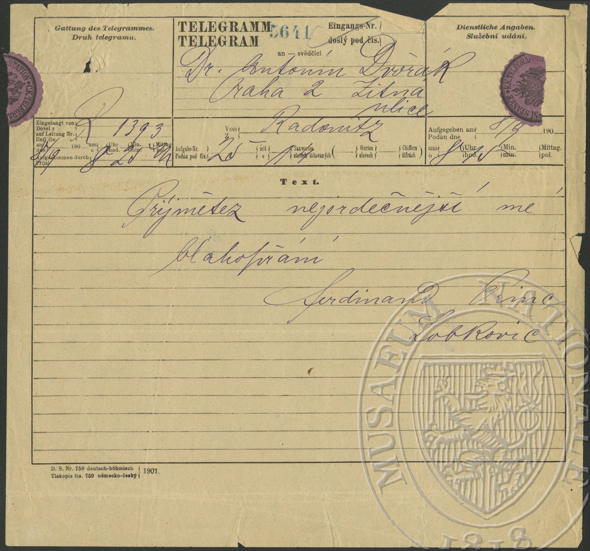 Lobkovic Ferdinand Dvořák Antonín