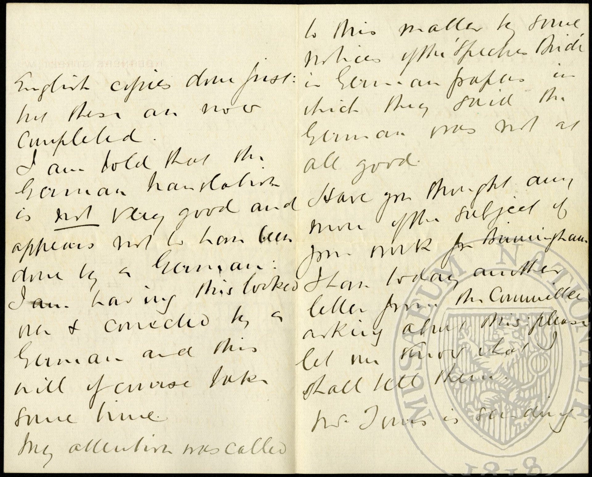 My attention was called to this matter by some notices of the ‘Spectres Bride’ in German papers in which they said the German was not at all good.