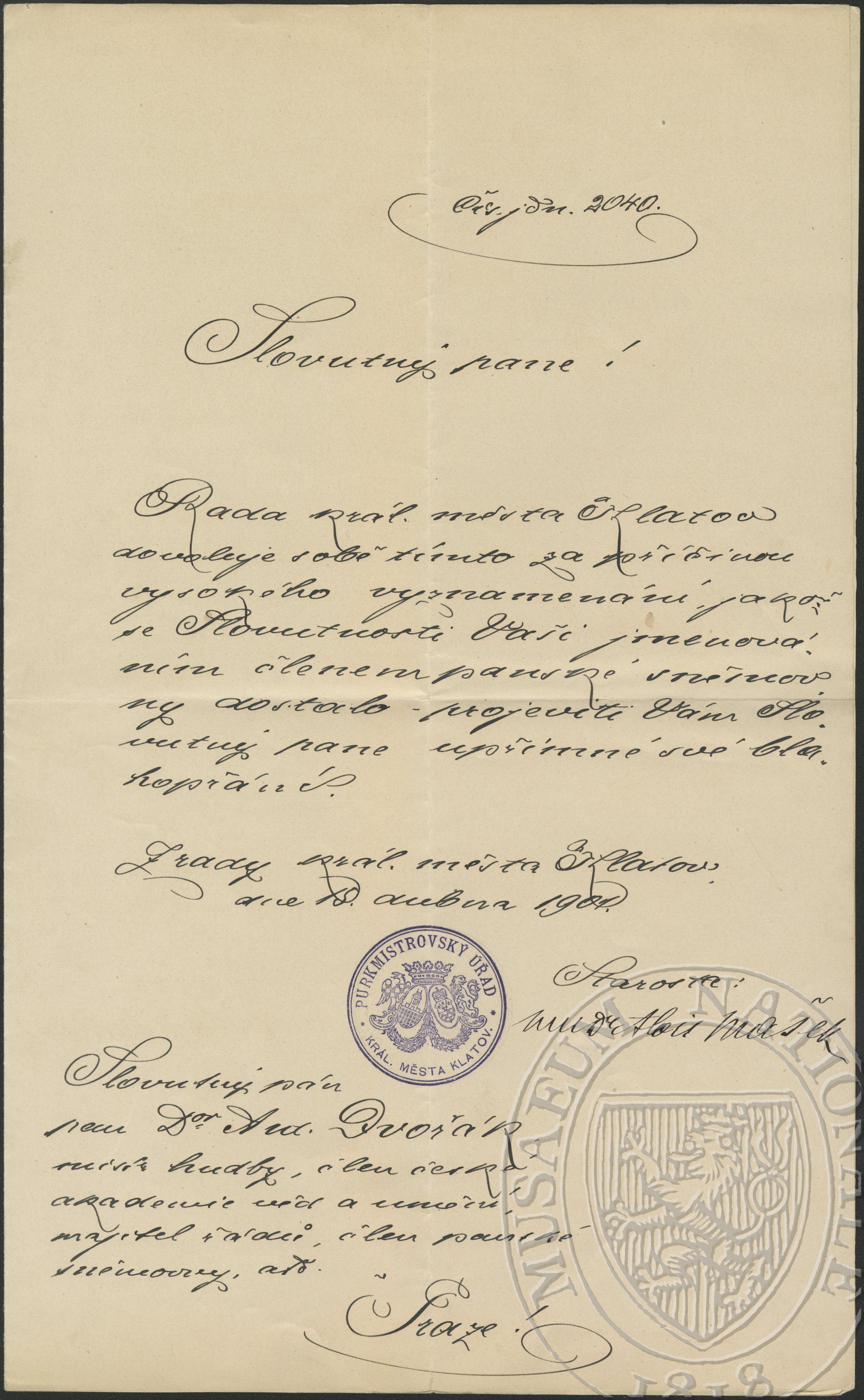 Rada král.města Klatov Dvořák Antonín