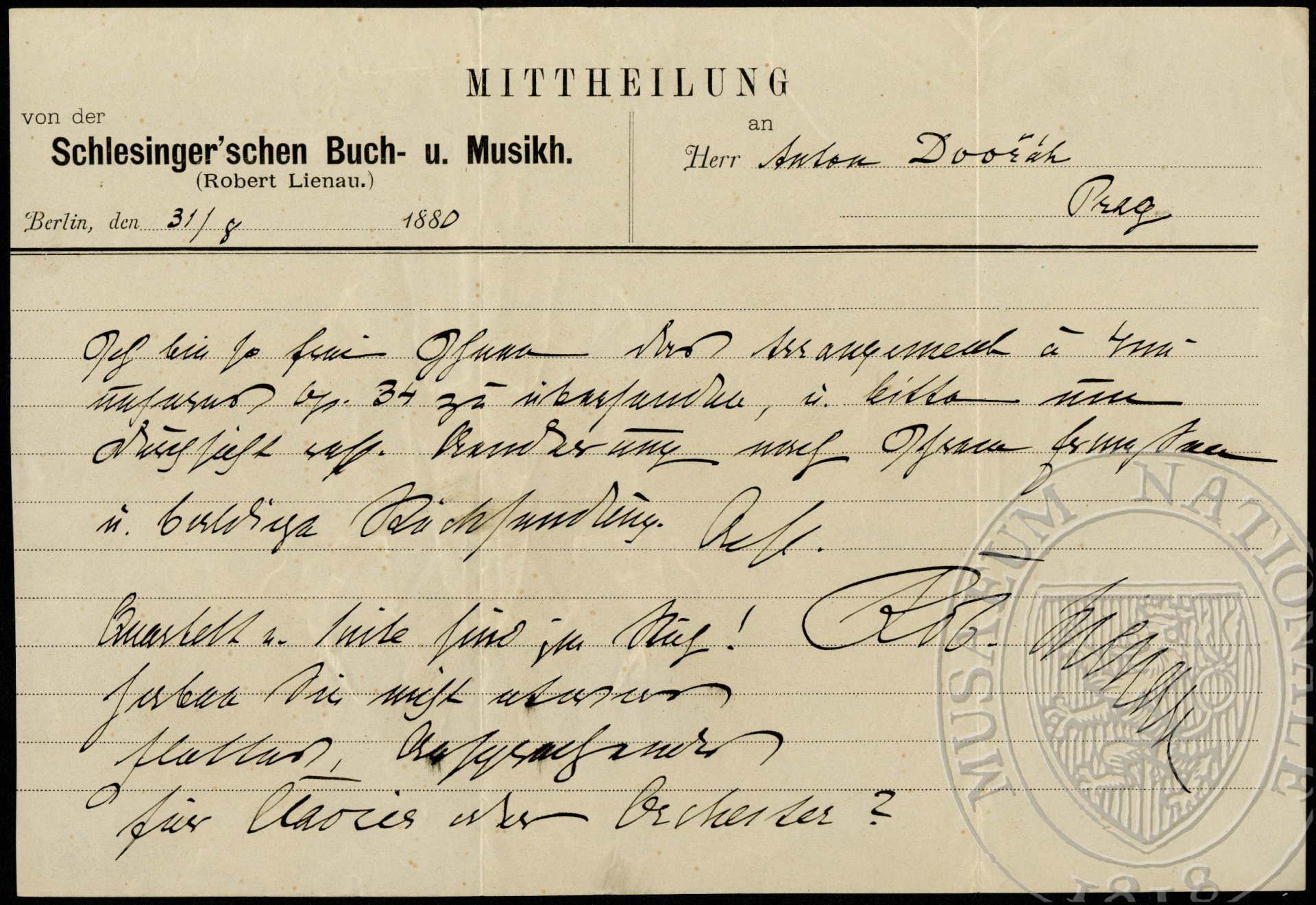 Schlesinger (Robert Lienau) Dvořák Antonín