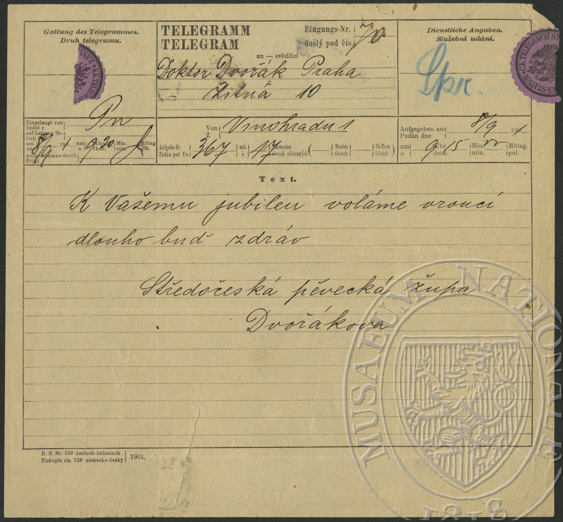 Středočeská pěvecká župa Dvořákova Dvořák Antonín