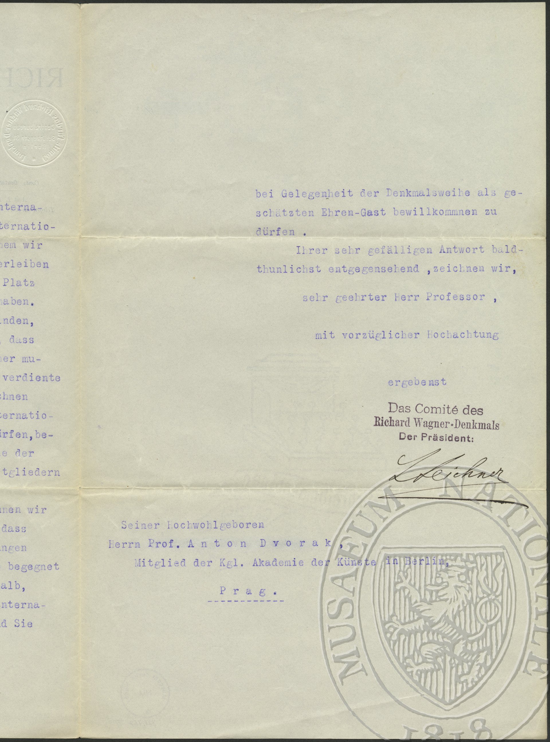 Výbor pro postavení pomníku Richarda Wagnera Dvořák Antonín