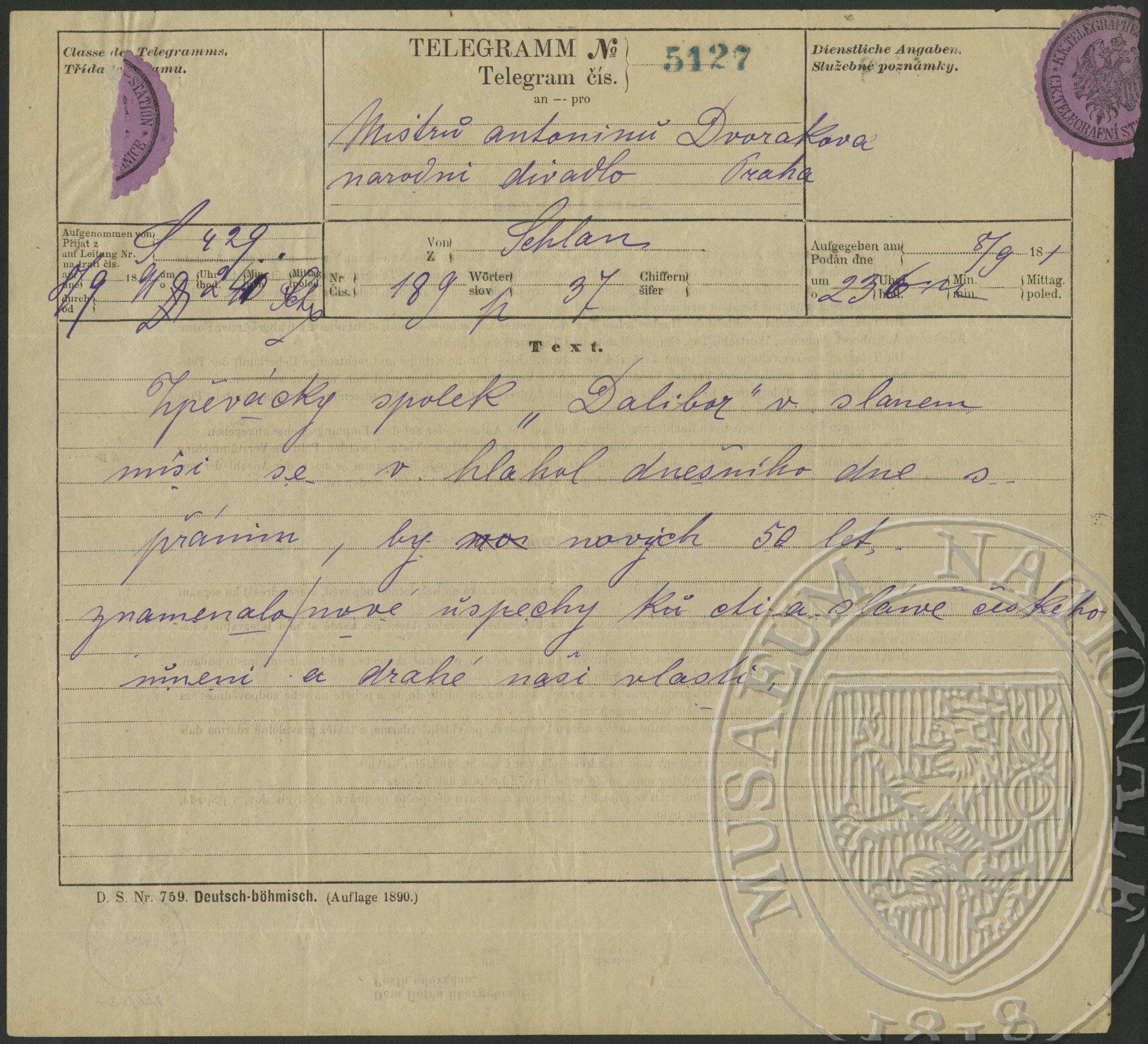 Dalibor, zpěvácký spolek Dvořák, Antonín