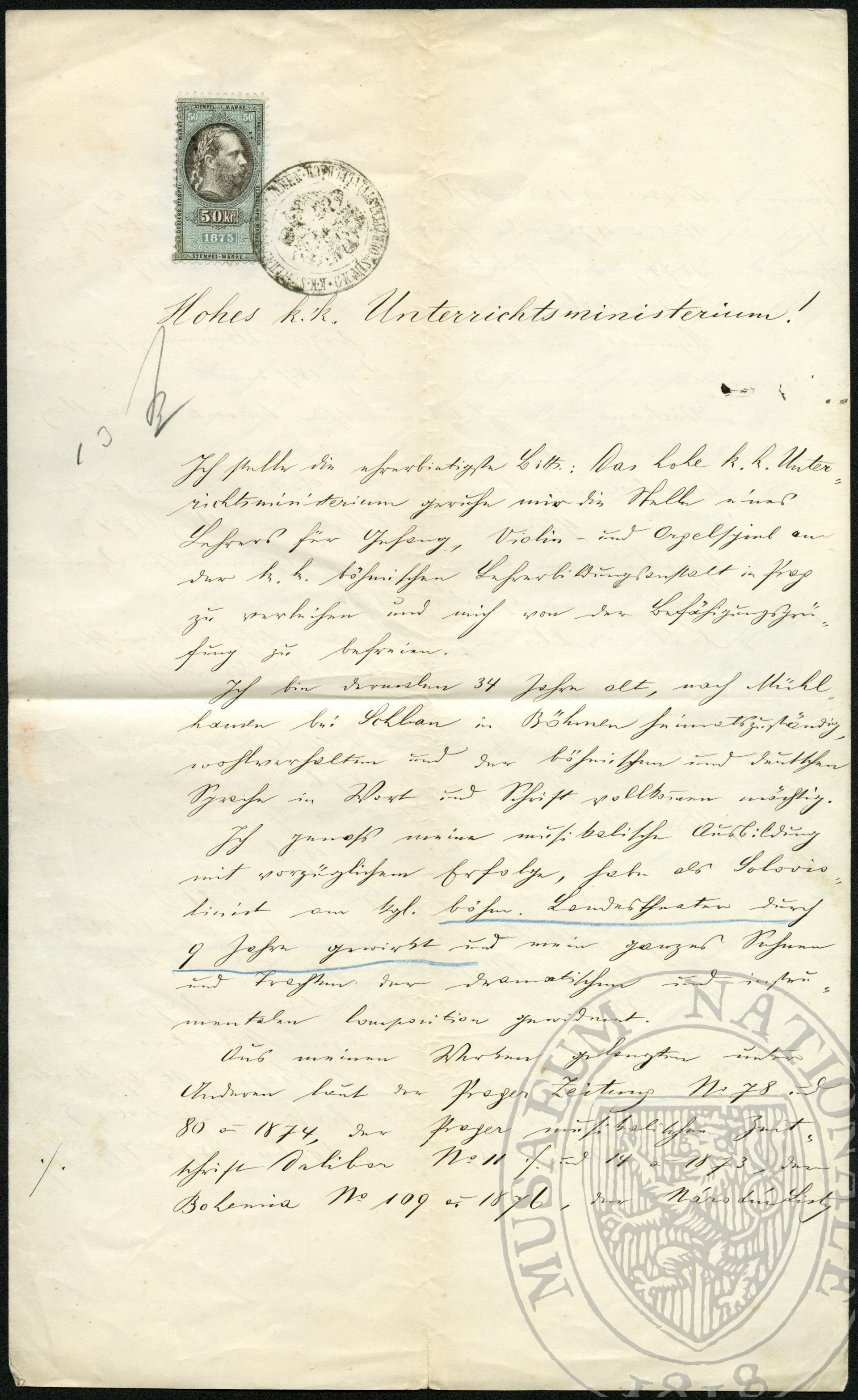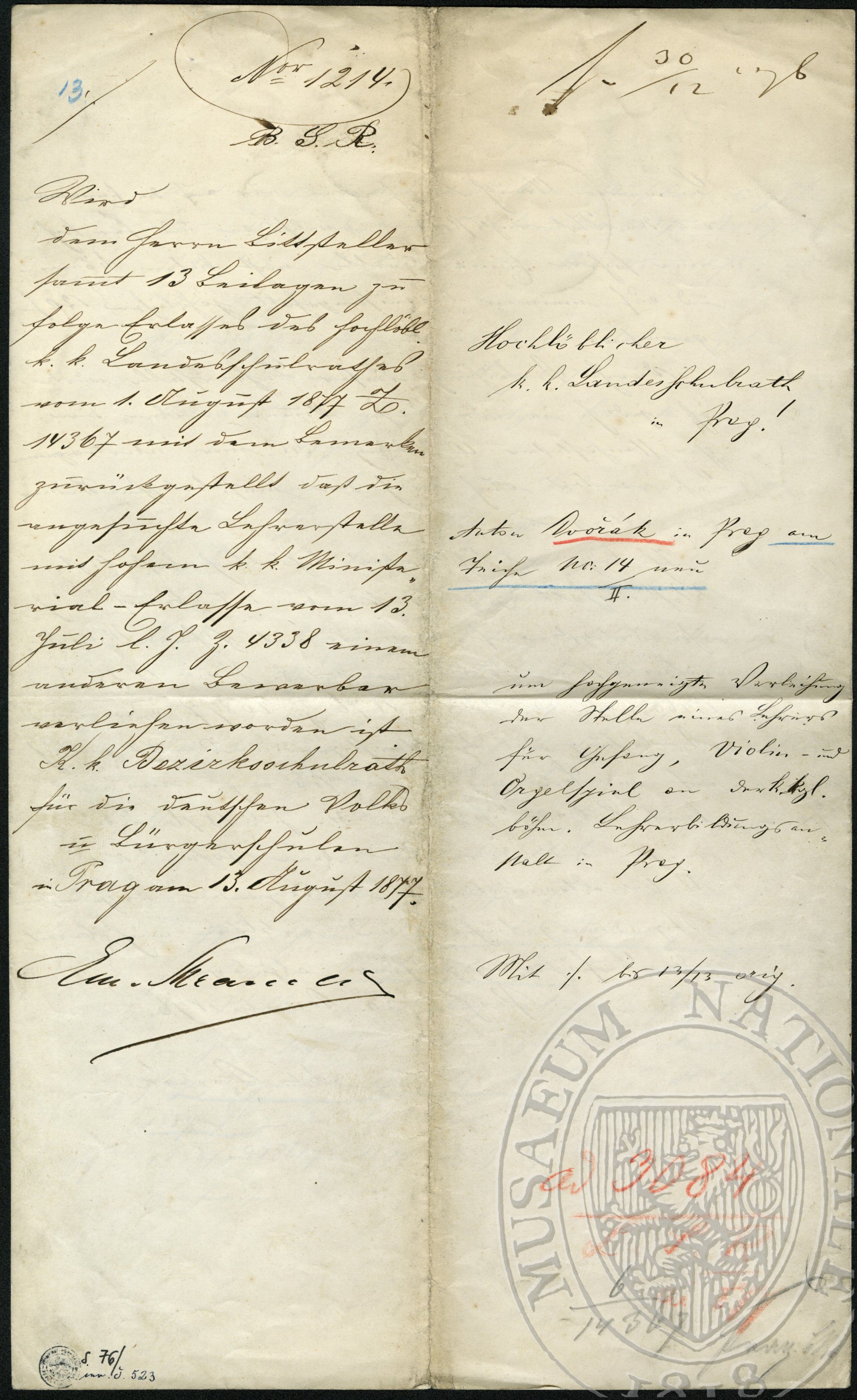 Dvořák, Antonín K.k. Unterrichtsministerium