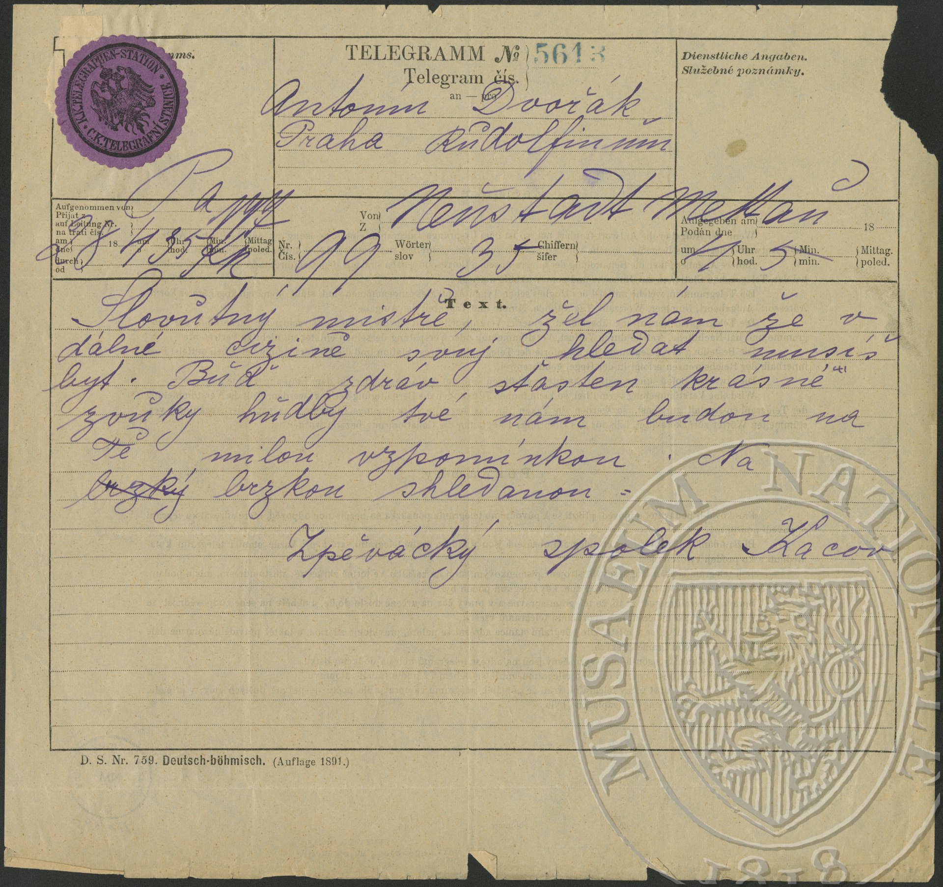 Kácov, zpěvácký spolek Dvořák, Antonín