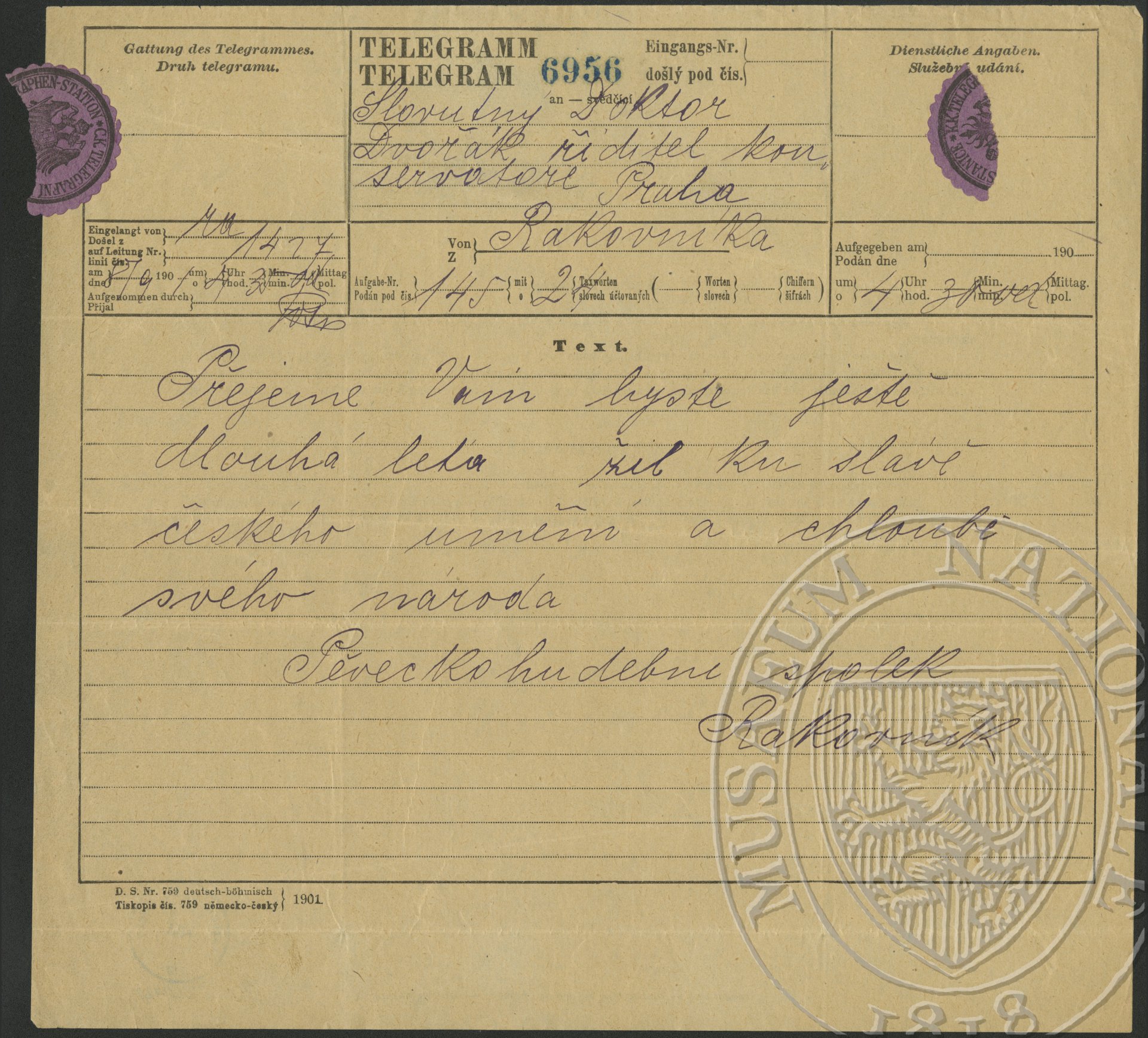 Rakovník,pěvecko-hudební spolek Dvořák, Antonín